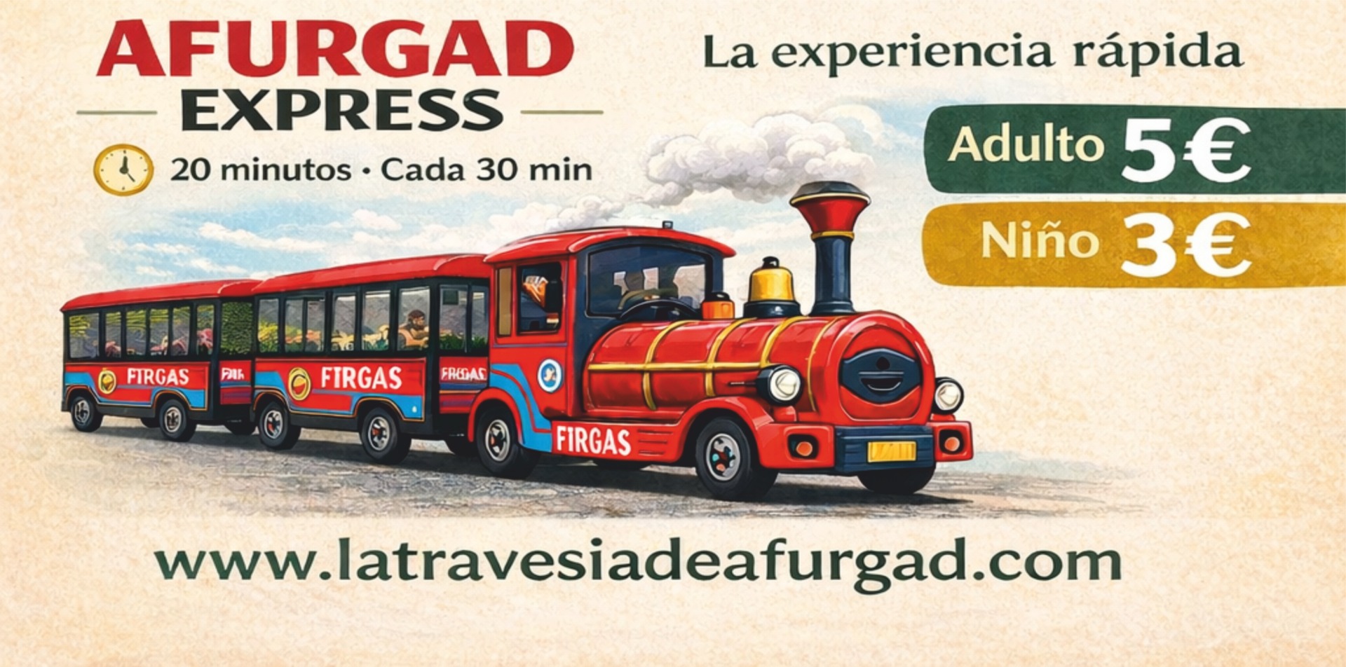 Descubre Firgas como nunca antes: sube al mini tren turístico Aguas de Firgas y déjate llevar por una experiencia única que combina cultura, tradición y gastronomía en un recorrido de aproximadamente 2 horas de duración y 12 kilómetros.